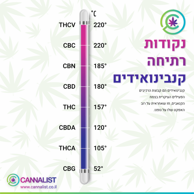 נקודת הרתיחה של THC היא 157 מעלות צלזיוס. זו הטמפרטורה שבה מולקולות THC מתחילות להתנדף וובהן ניתן לשאוף אותן. בפועל, בכל טמפרטורה מתחת ל-163 מעלות THC לא ישתחרר מהתפרחת באופן שניתן להרגיש אותו. רק כמות קטנה ממנו תשתחרר ולכן ההשפעה הפסיכואקטיבית תהיה נמוכה. האם זה טוב או רע? תלוי את מי שואלים ותלוי איזו חוויה או אפקט אתם מחפשים.