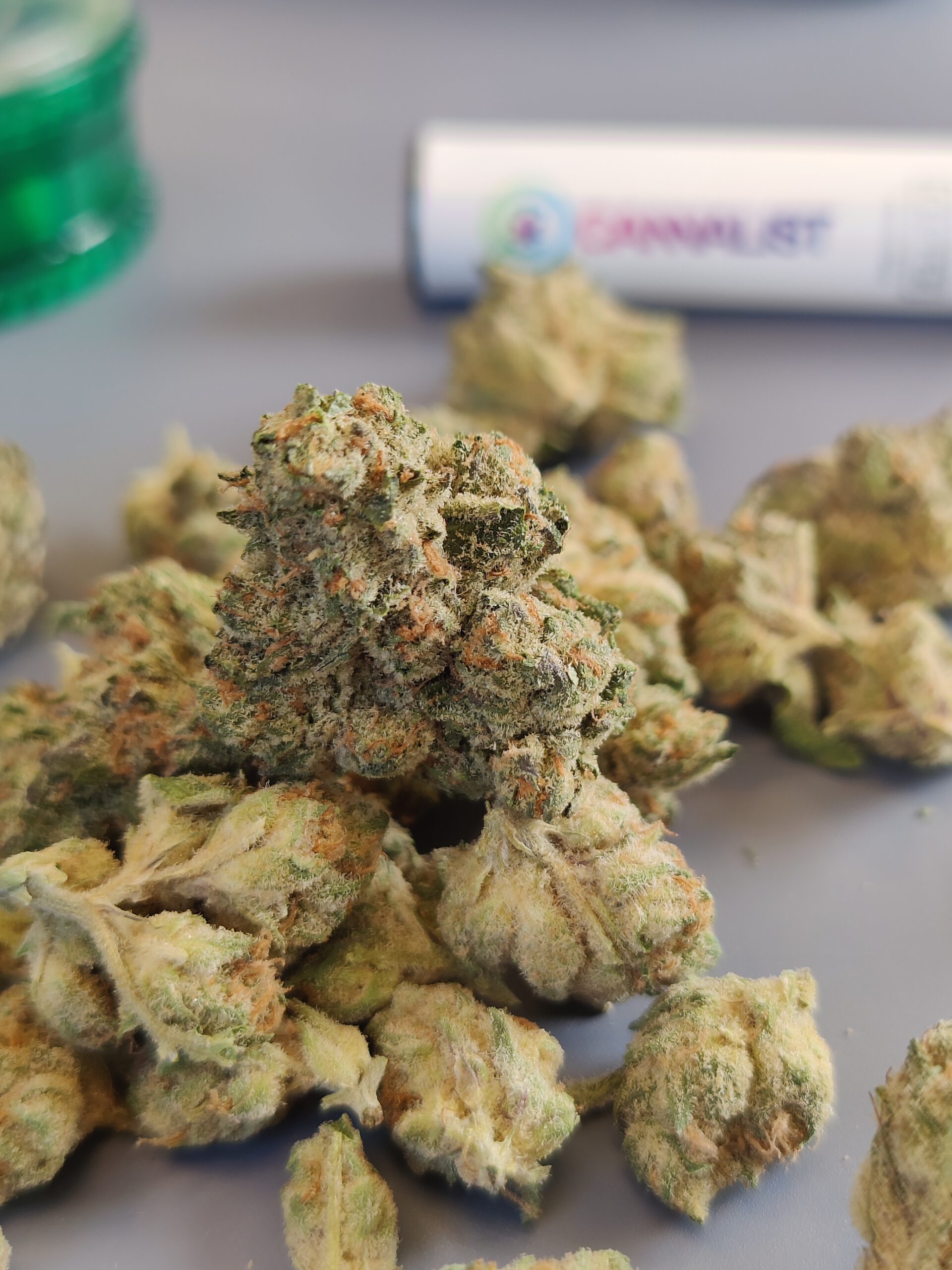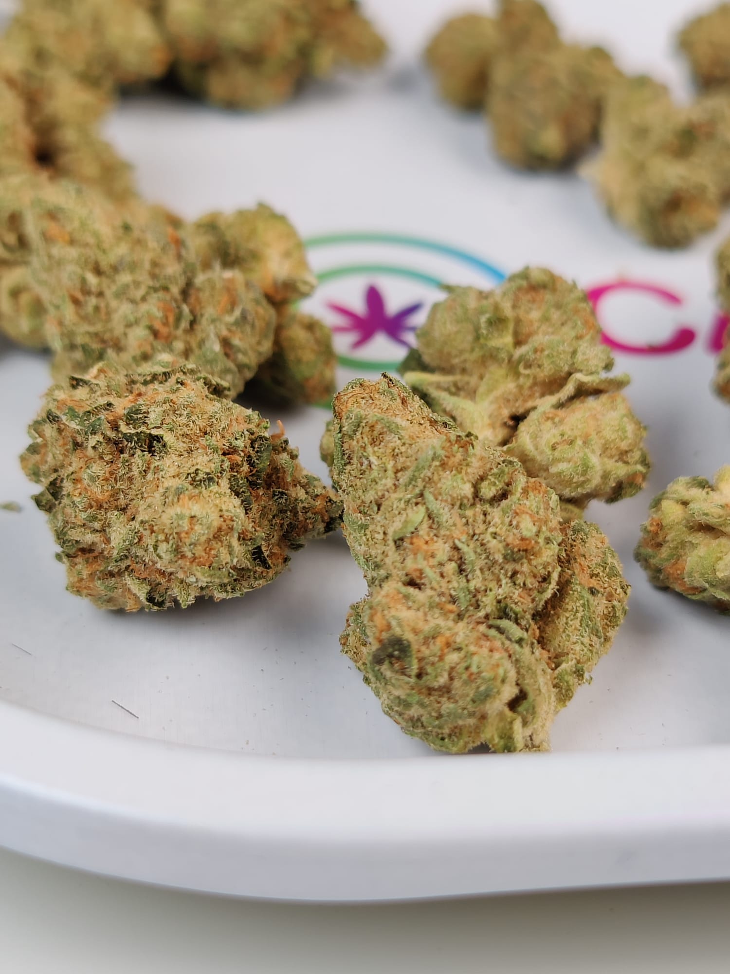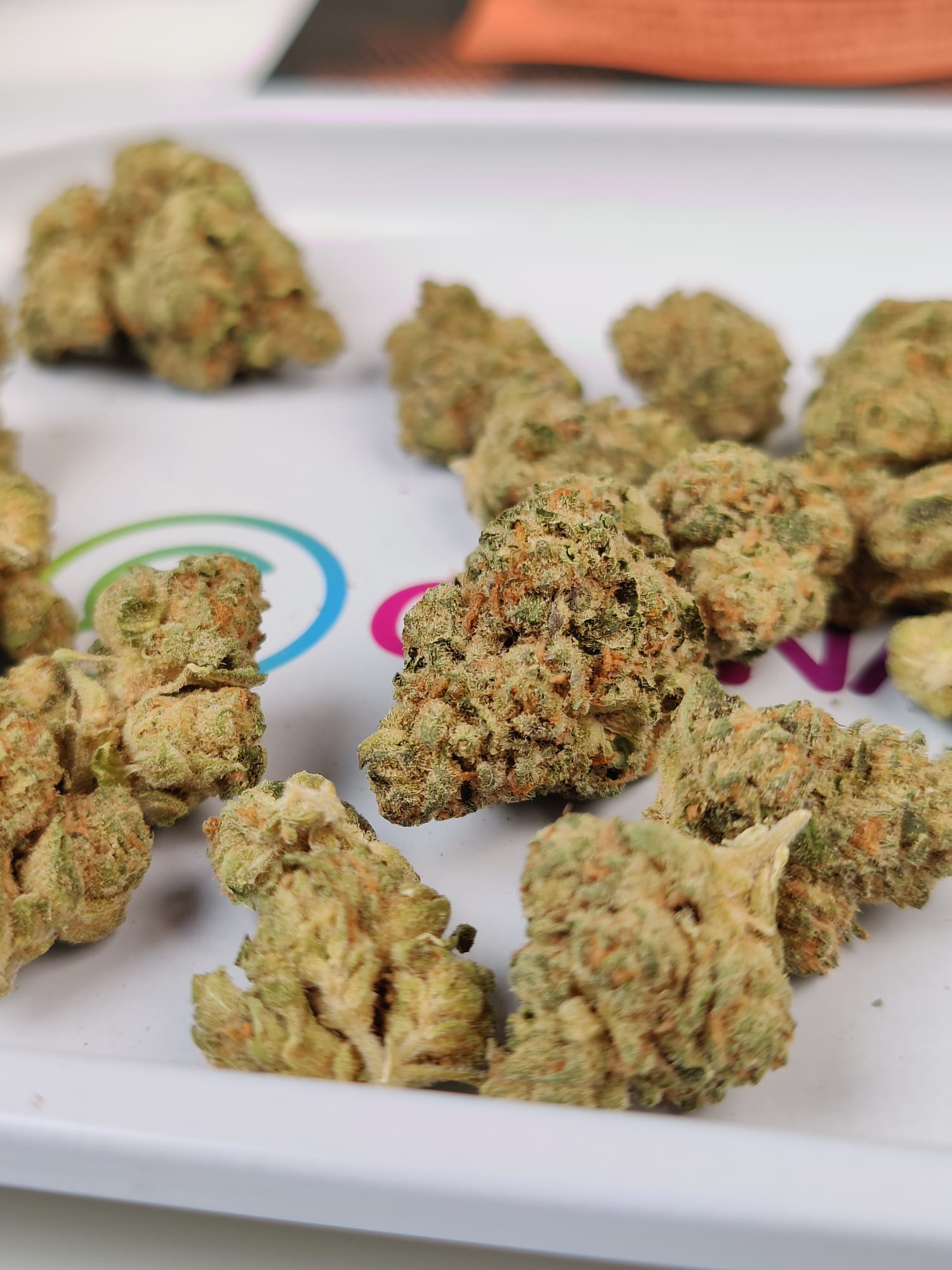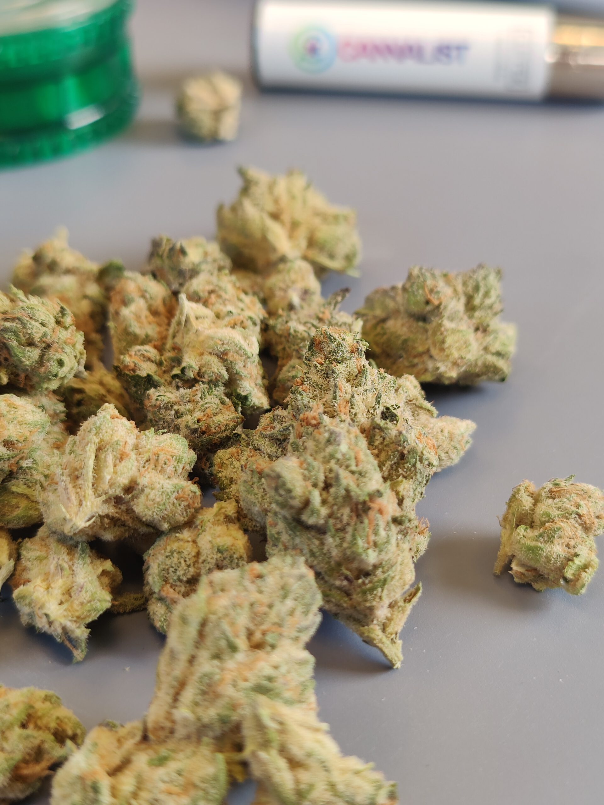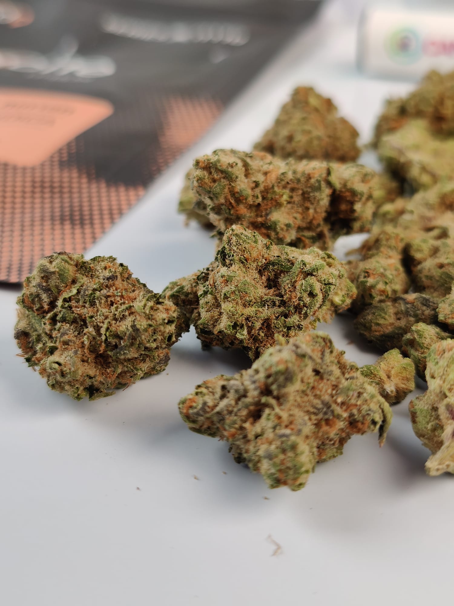 פרחים דחוסים, נקיים מעלים, מכוסים טריכומות, מריחים מדהים וטעימים באידוי.