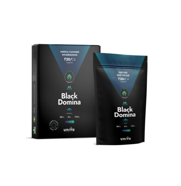 בלאק דומינה (Black Domina) מבית יוניבו. זן היברידי בעל נוכחות אינדיקה דומיננטית במינון T20/C4 מסדרת Superior. הזן גדל במתקן הקנאביס אינדור של קנערבה. מיועד לשימוש לילה.