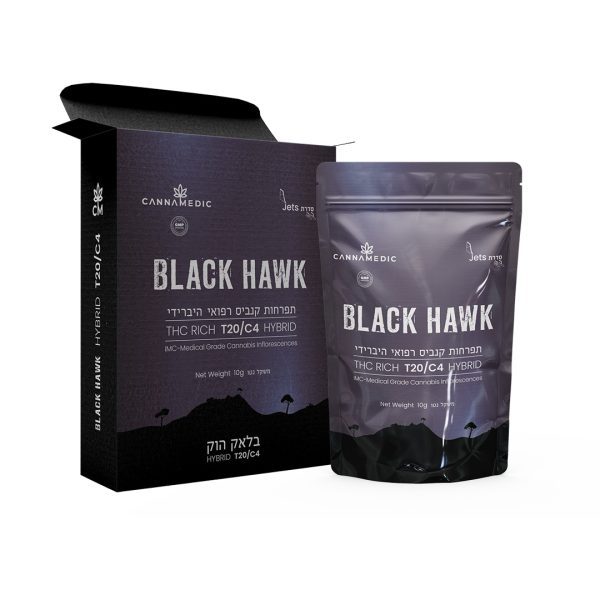 בלאק הוק (Black Hawk) הוא זן היברידי מסדרת ג'טס – Jets מבית קאנמדיק (CannaMedic) במינון T20/C4. מתאים לשימוש יום/לילה.