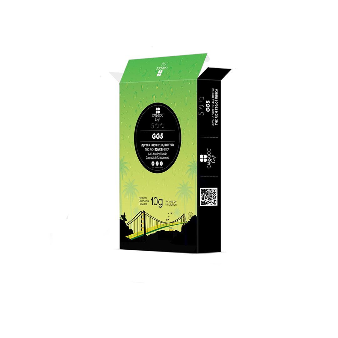 תפרחות קנאביס רפואי ג'י ג'י 5 (GG5)  אינדיקה מסדרת קאלי של חברת קנדוק.  התפרחות גדלו בחממת הקנאביס של קנדוק בדרום הארץ. ג'י ג'י 5 הוא הכלאה של הזנים סיסטר גלו (GG1) ואוריג'ינל גלו (GG4)