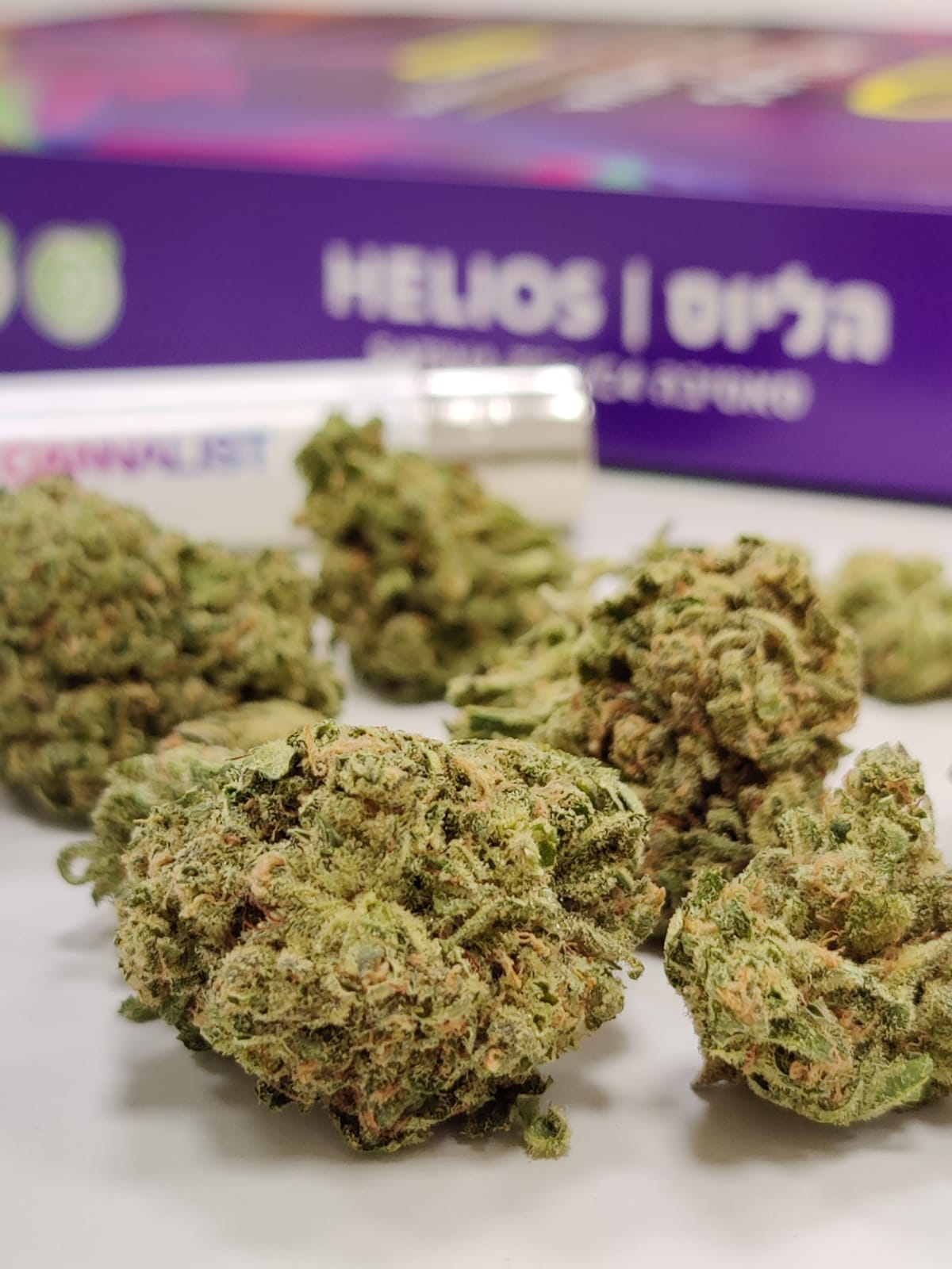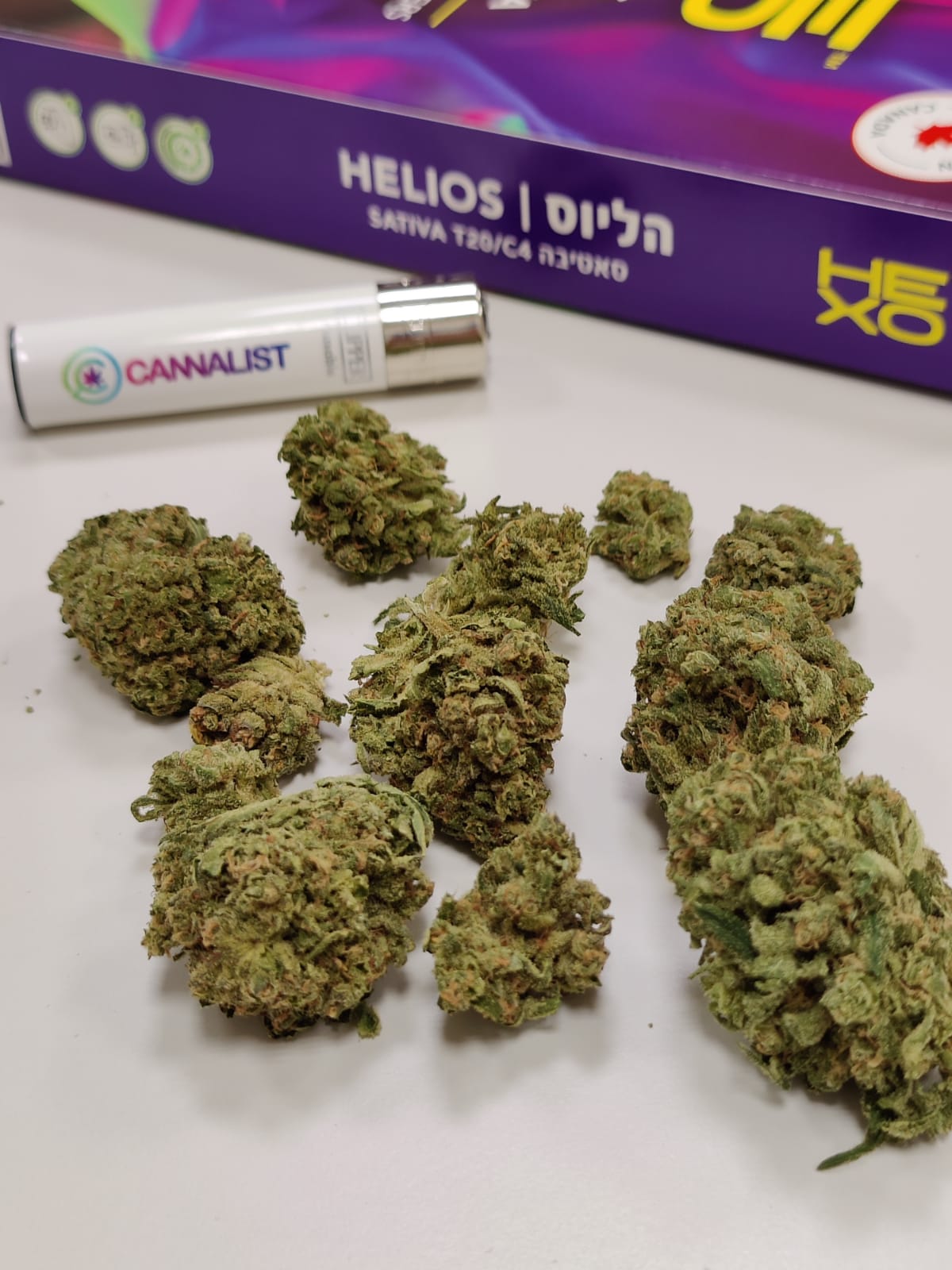 מקורן של תפרחות קנאביס הליוס בזן סנואו לאופרד, זן היברידי עם נטייה לאינדיקה שנוצר ע״י הכלאת שני זני קנאביס: טייגר-מלון (Tigermelon) וסנואו לוטוס (Snow Lotus). לדברי חברת הקסו הקנדית הליוס הוא פנוטיפ של סנואו לאופרד עם נטייה לסאטיבה דומיננטית.