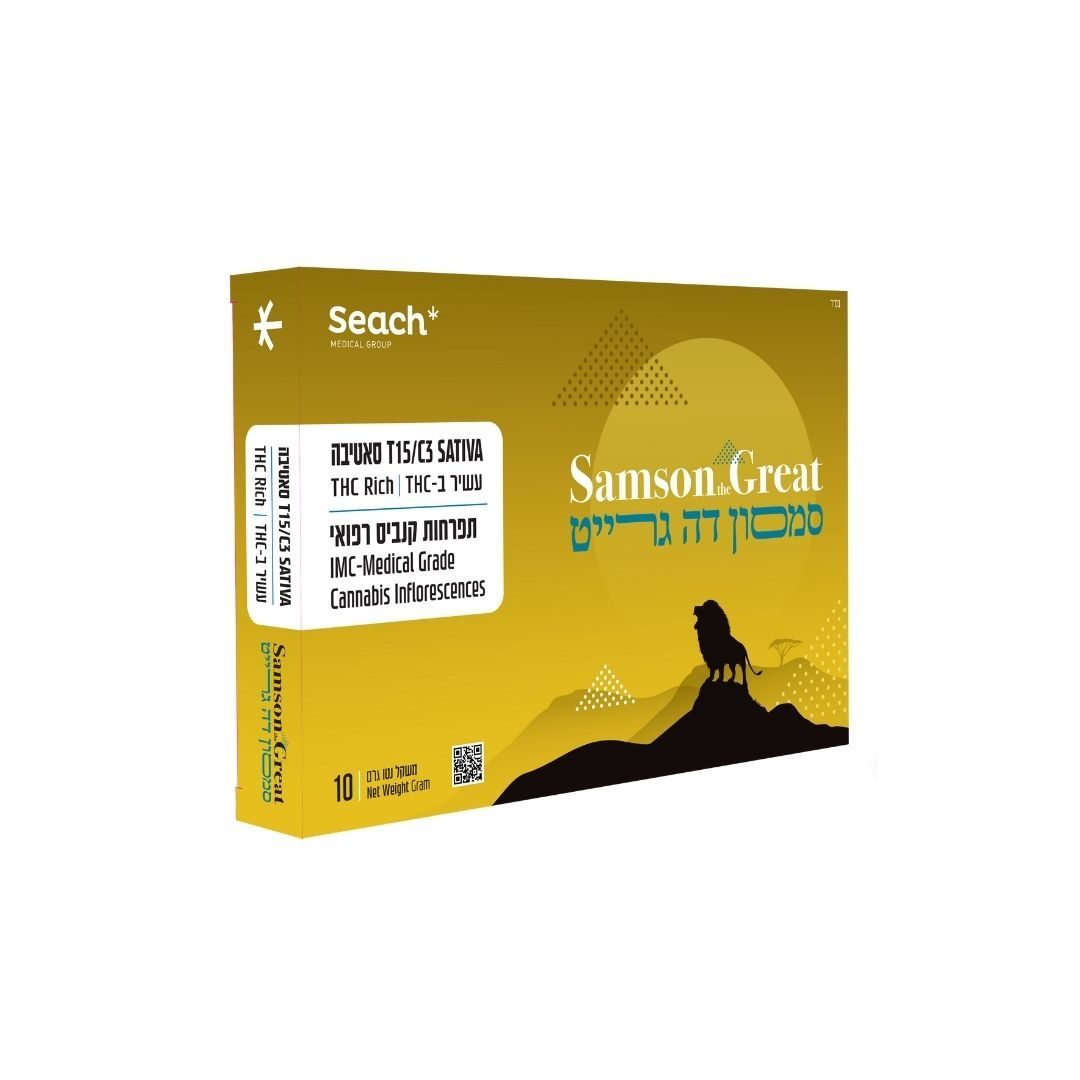 סמסון דה גרייט (Samson The Great) מהסדרה התנכ"ית של חברת שיח, זן סאטיבה עתיר THC במינון T15/C3. מיועד לשימוש יום.