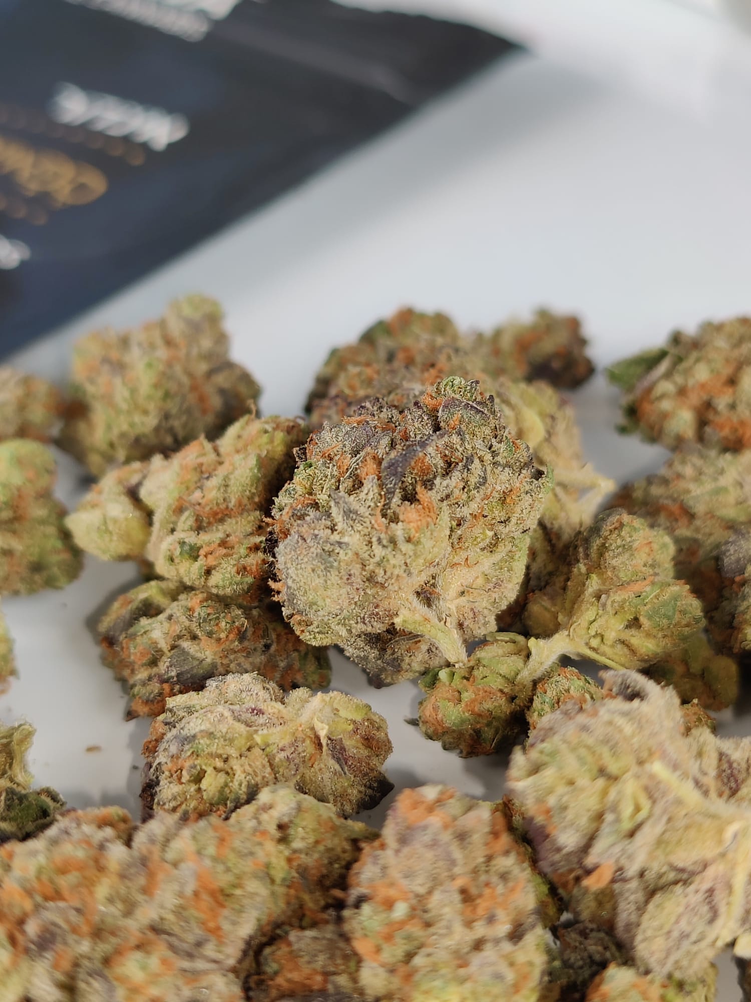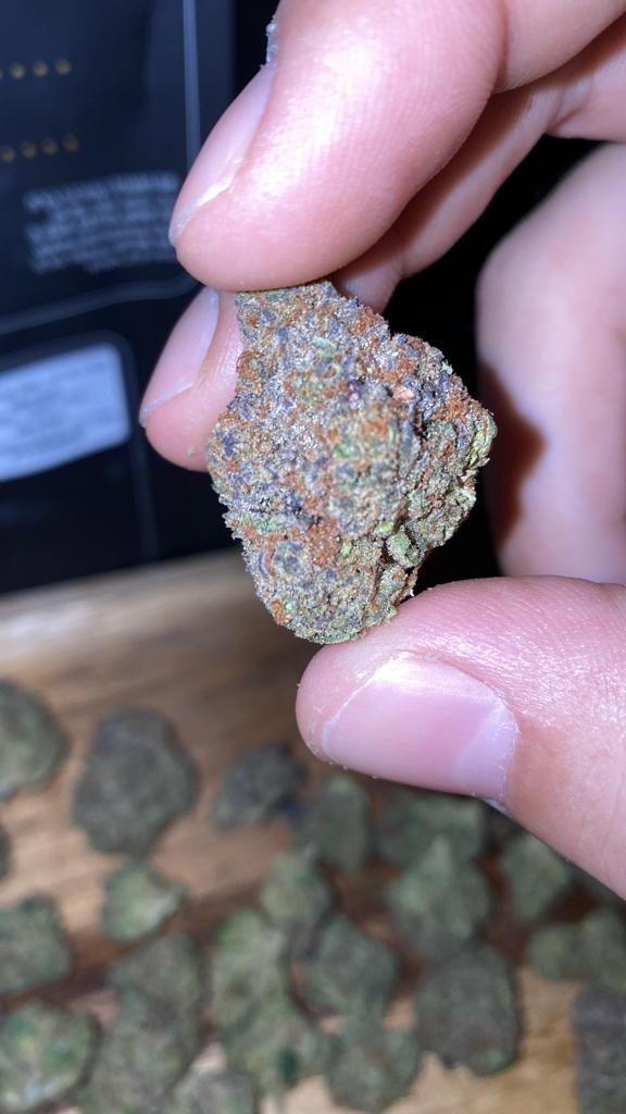 התפרחות קנאביס גודלו בתנאי אינדור, עברו תהליך טרים ידני יסודי, ותהליך יישון קפדני להשבחתן. המראה שלהן כדורי ודחוס בגודל בינוני, עם צבעוניות מרשימה בגווני סגול ירוק וכתום. הארומה ייחודית ומאופיינת בניחוחות הדרים ואורנים ובטעם חמוץ מתוק עם נגיעות של דיזל.