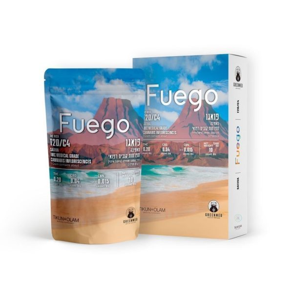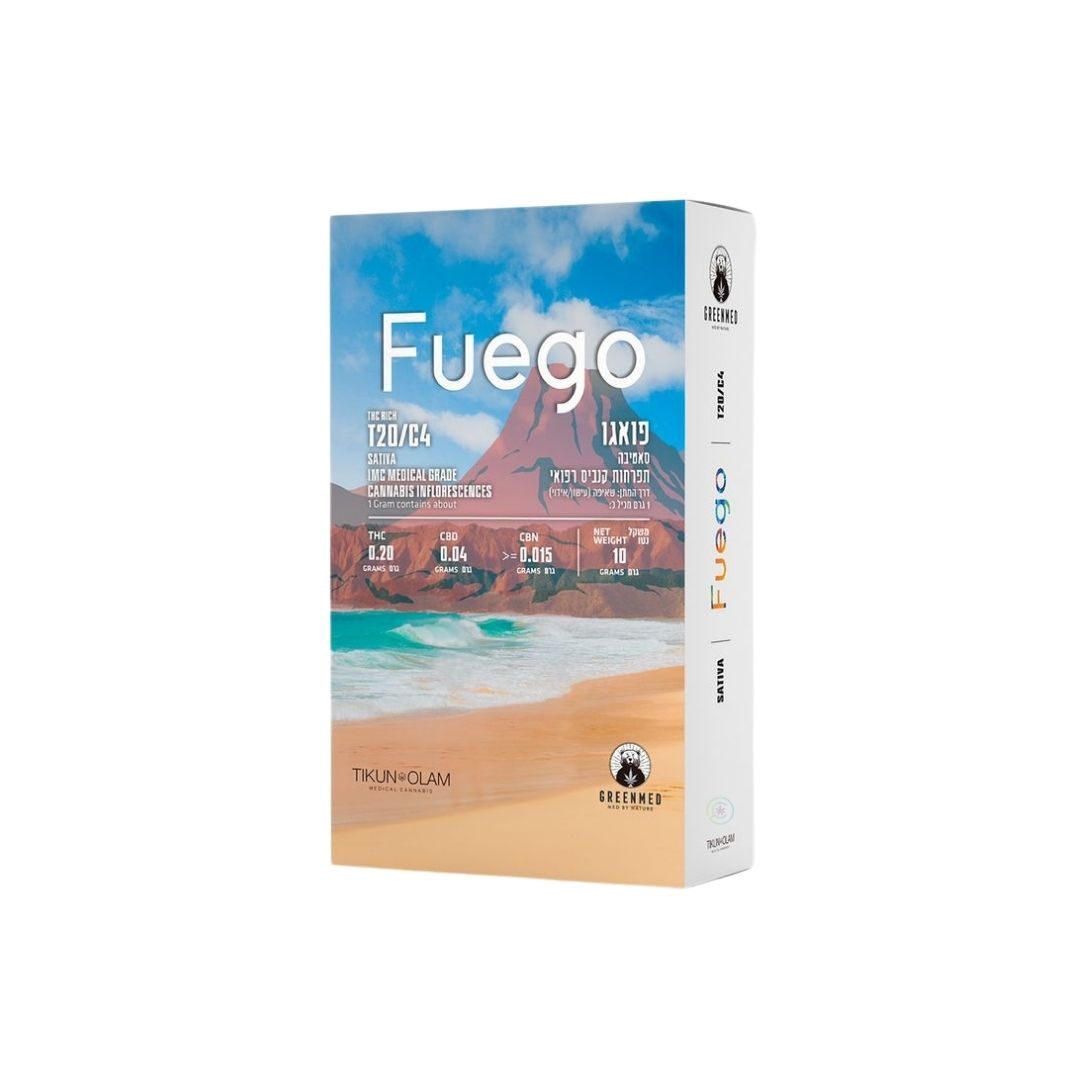 פואגו (Fuego) הוא זן סאטיבה במינון T20/C4 מוצר משותף למותגים גרינמד (Greenmed), תיקון עולם (Tikun Olam), מתאים לשימוש יום.