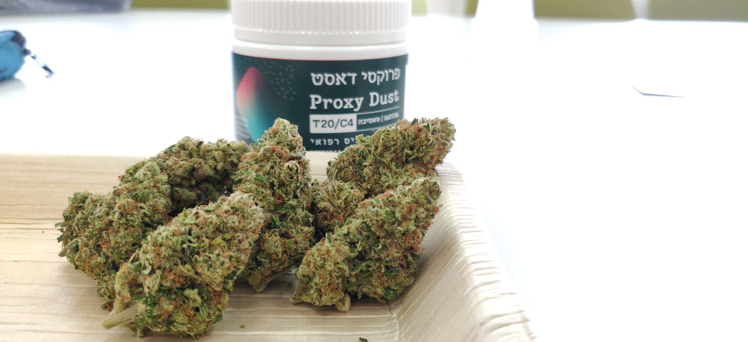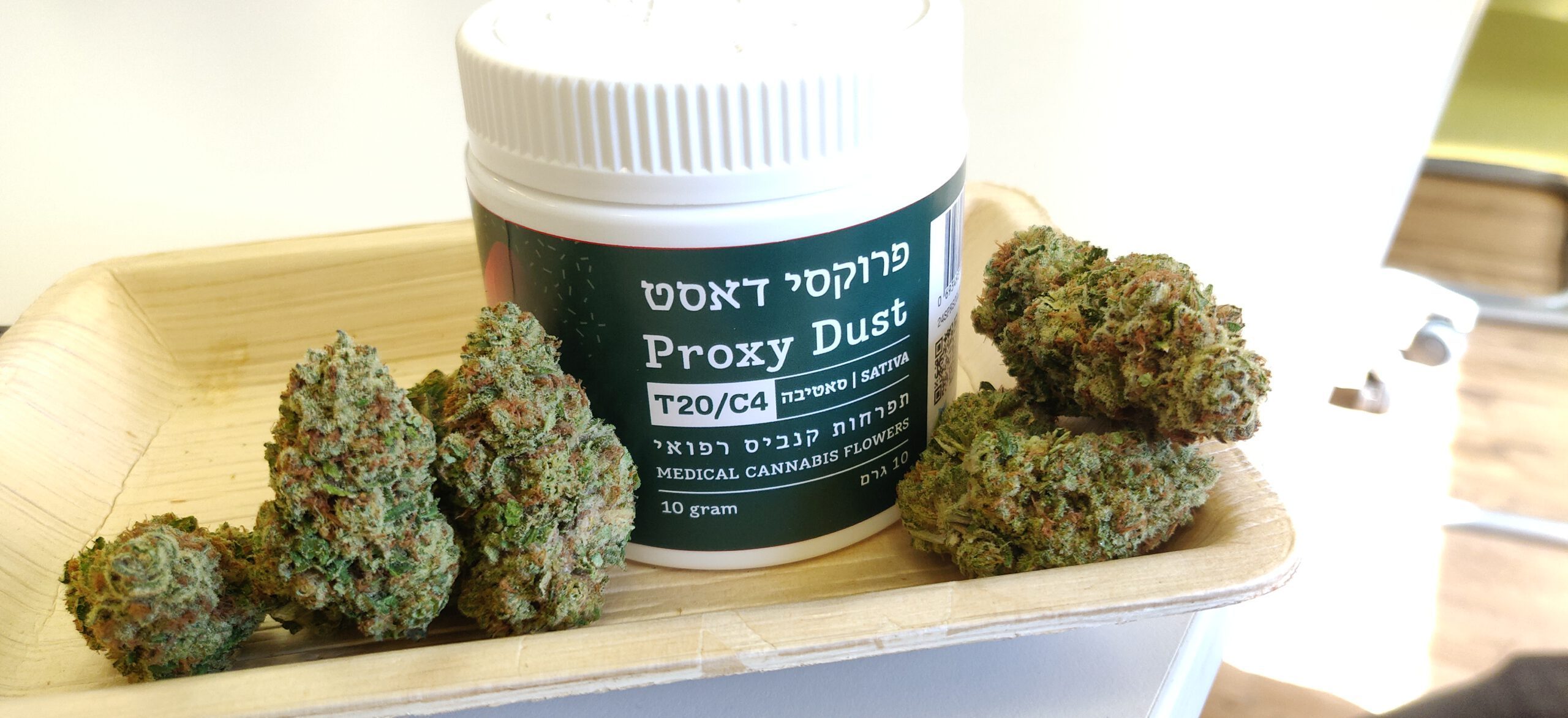 פרוקסי דאסט (Proxy Dust) הינה סאטיבה דומיננטית חזקה מותאמת לשוק הישראלי, פרחים גדולים מלאי טריכומות עם אחוז טרפנים גבוה במיוחד. זנים שפותחו במיוחד בחוות BOL במשך שנתיים על ידי מיטב המגדלים שלנו, ללא מיכון ייבוש בתלייה וטרימינג ידני להבטחת איכותו של כל פרח ופרח.