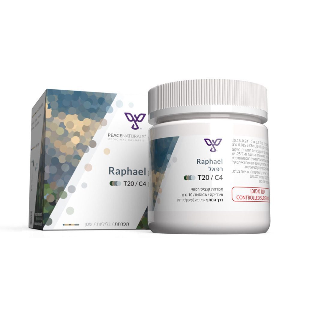 תפרחות רפאל אינדיקה T20/C4, קנאביס רפואי פרי פיתוחם של פיס נטורלס (Peace naturals), חברת הבת של קרונוס שפועלת בין היתר בישראל. גנטיקת רפאל נקראה על שמו של פרופ׳ רפאל משולם, והיא גולת הכותרת של פיתוח גנטי בן 7 שנים של קרונוס עם זני מקור עתירי מירסן, קריופילן ולימונן. בעזרת שלושת הטרפנים הדומיננטיים האלה, 'רפאל' מעצב טעם ניכר שנע בין פירות יער לסוכריית דובדבן מתוקה.