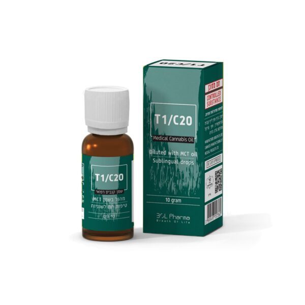 שמן קנאביס רפואי על בסיס שמן MCT מבית חברת בול פארמה. שמן היברידי עתיר CBD במינון T1/C20. מיועד לשימוש יום/לילה.