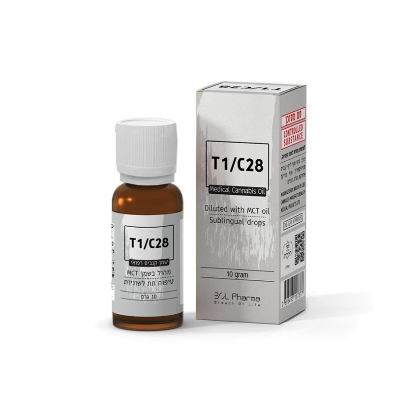 שמן קנאביס רפואי על בסיס שמן MCT מבית חברת בול פארמה. שמן היברידי עתיר CBD במינון T1/C28. מיועד לשימוש יום/לילה.