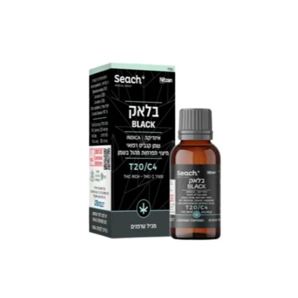 שמן קנאביס רפואי בלאק על בסיס MCT מבית חברת שיח – Seach. שמן אינדיקה עתיר THC במינון T20/C4. מותאם לשימוש לילה.
