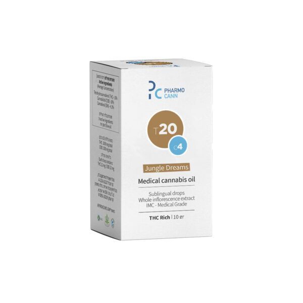 שמן ג'ונגל דרימס – Jungle Dreams אינדיקה T20C4 מבית חברת פארמוקן. שמן עתיר THC המתאים לשימוש לילה. מיועד למטופלים בקנאביס רפואי.