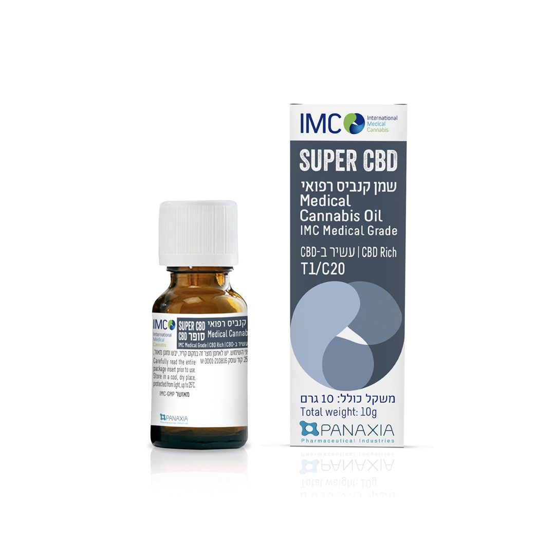 שמן סופר סי בי די (Super CBD) הוא שמן היברידי מבית איי אם סי (IMC) במינון T1/C20, מתאים לשימוש יום/לילה.