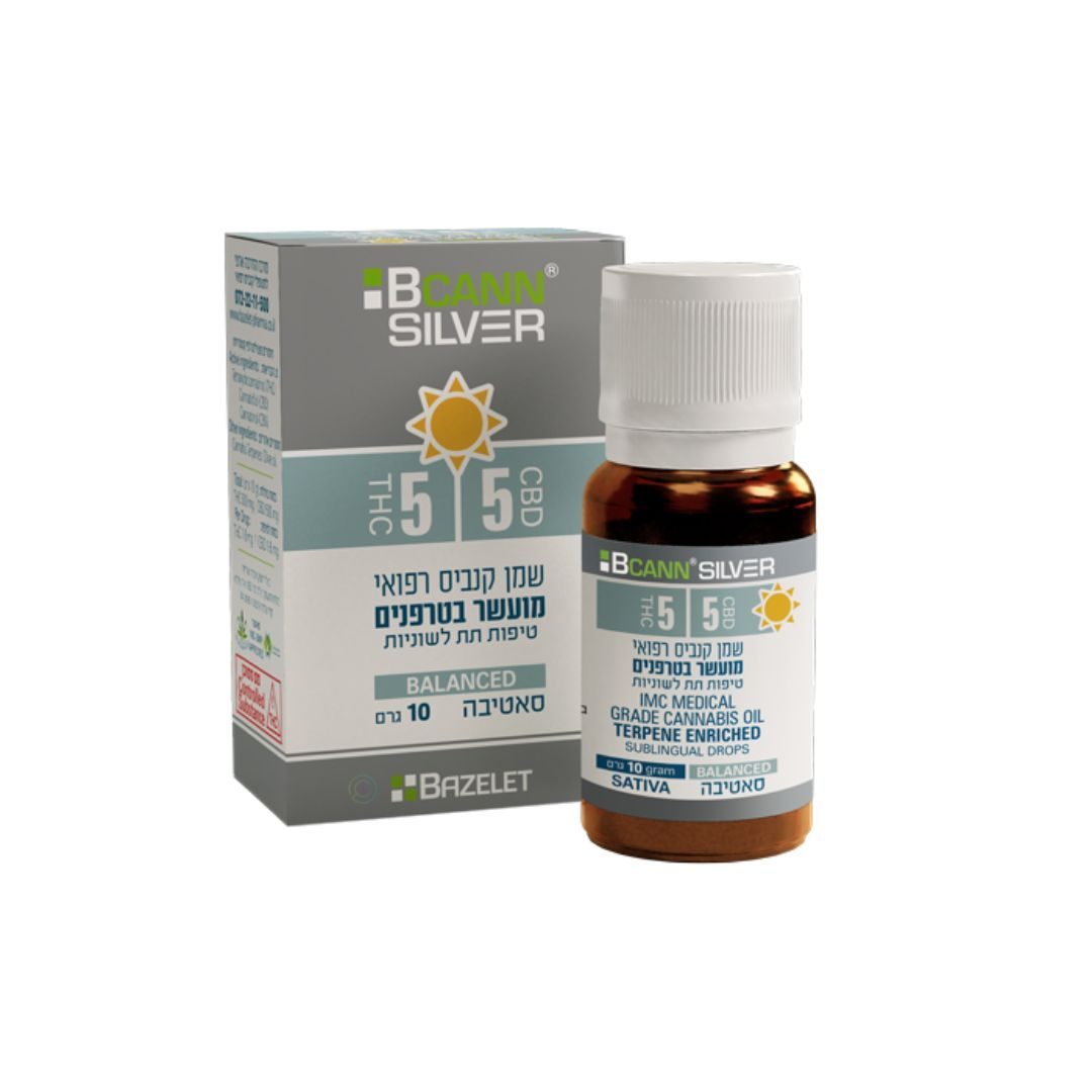 סילבר (BCANN Silver) הוא שמן סאטיבה מבית בזלת (Bazelet) במינון T5/C5, מתאים בעיקר למטופלים בגיל מבוגר. מותאם לשעות היום.