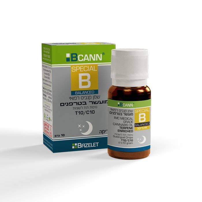 שמן קנאביס רפואי ספיישל Special B מבית חברת BCANN (בזלת פארמה). שמן אינדיקה במינון מאוזן T10/C10 המועשר בטרפנים. מיועד לשימוש לילה.