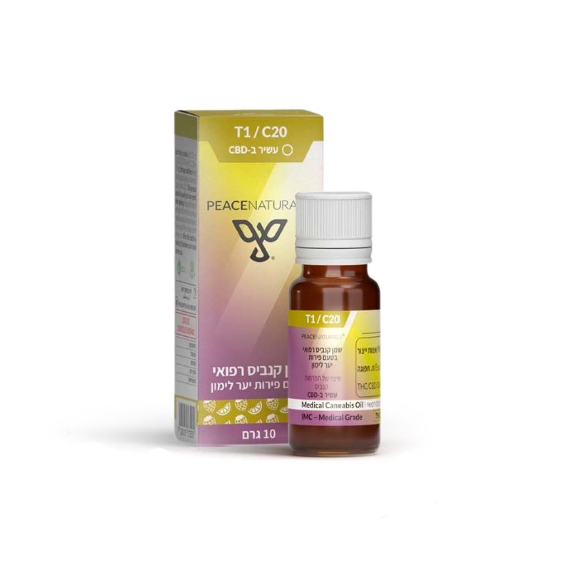 שמן פיס נטורלס היברידי לימון ופירות יער | T1/C20 מבית חברת “Peace Naturals” הוא מוצר קנאביס רפואי במיצוי מלא, המכיל ריכוזים קבועים ומדויקים של THC ו- CBD.