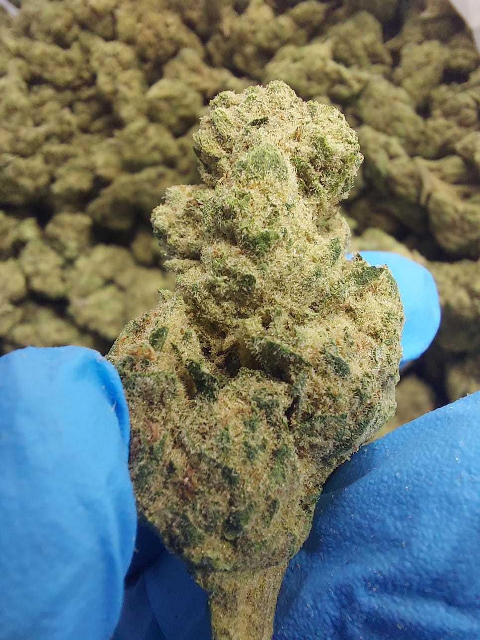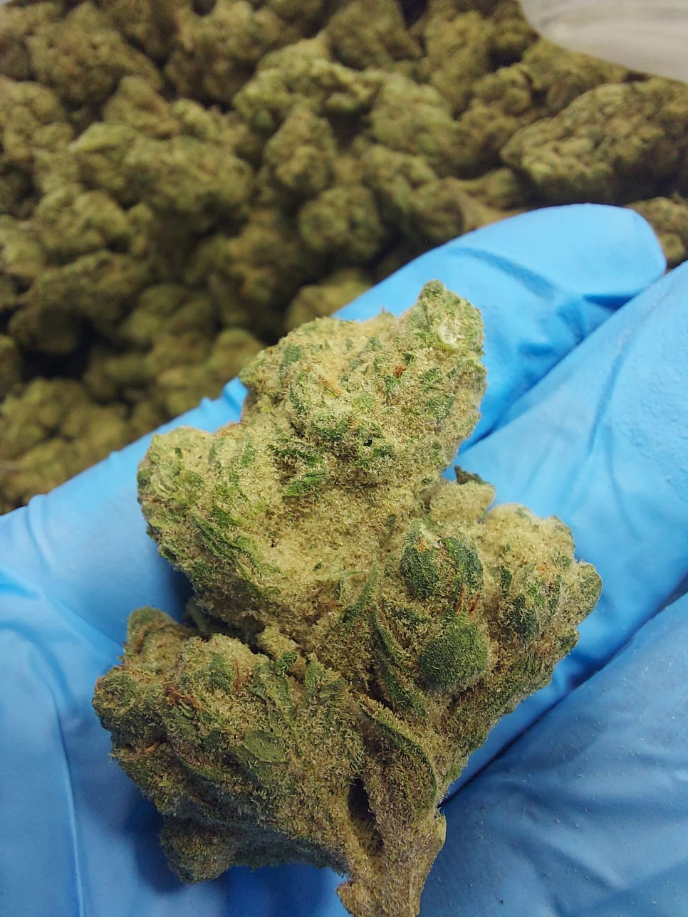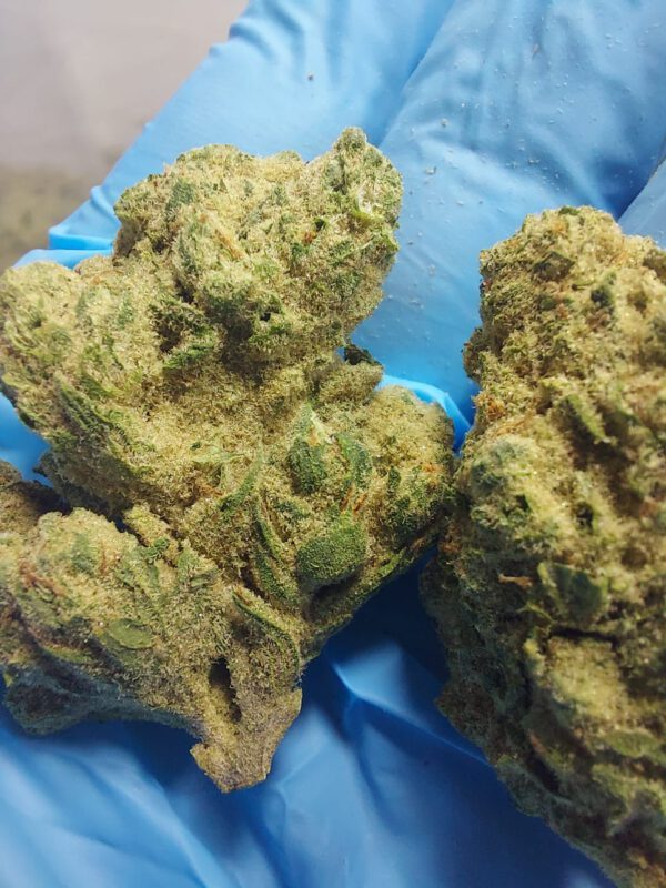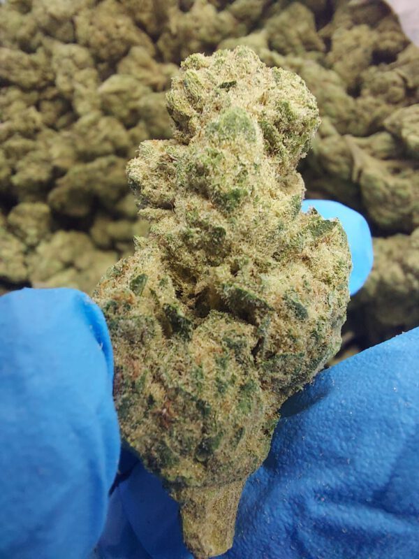 גודל התפרחת: גודל הפרחים לא עולה על 0.8 – 1.0 , נראות אחידה ומצוינת , טריכומות נהדרות , מעט יבשים (לא ברמת החול / אבקתי) , תפרחת בצבע ירוק בהיר ונגיעות זהובות.